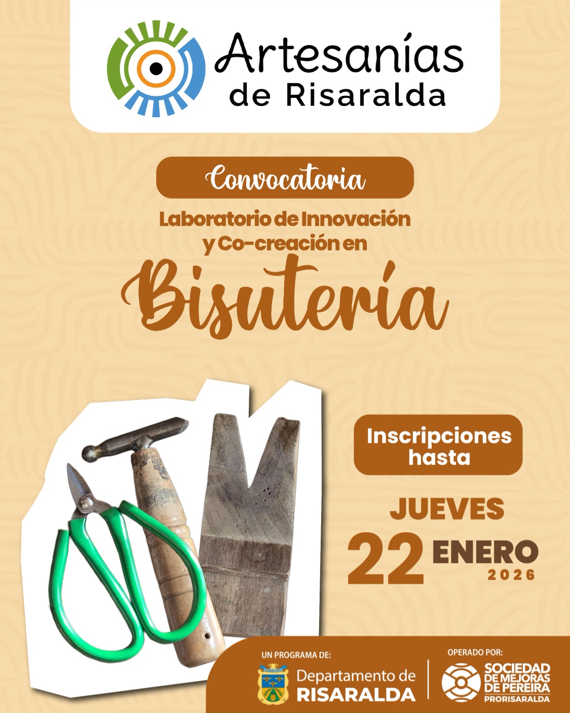 Este componente del programa, operado por la Sociedad de Mejoras de Pereira y financiado por la Gobernación de Risaralda, impulsa el crecimiento del sector artesanal del departamento, promoviendo la formación, la innovación y el trabajo colaborativo como motores del desarrollo cultural y económico del territorio.